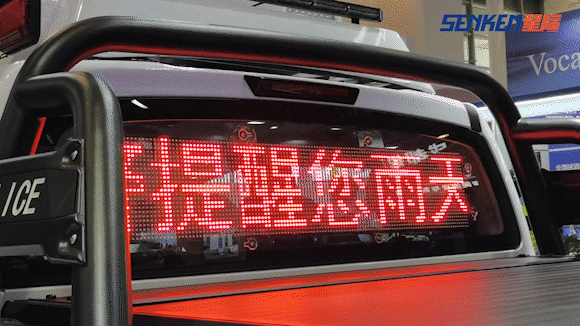 在车后,通过车载显示屏,加强警示可视化。随时可以通过手机APP修改显示的文字/图形,有助于周边人员更好、更快地理解警示含义,做到实时宣传警示。