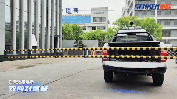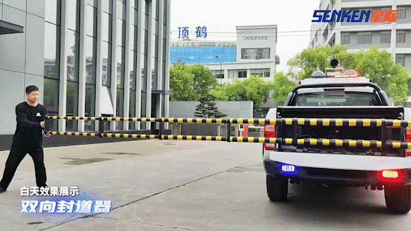 在执行快速设卡、拦阻嫌疑车辆、查处酒驾、压车引导车辆等特殊任务时,能够迅速封锁车道、匝道,同步完成灯光警戒、语音警示,提高执法安全防护能力,保障执勤人员的人身安全。