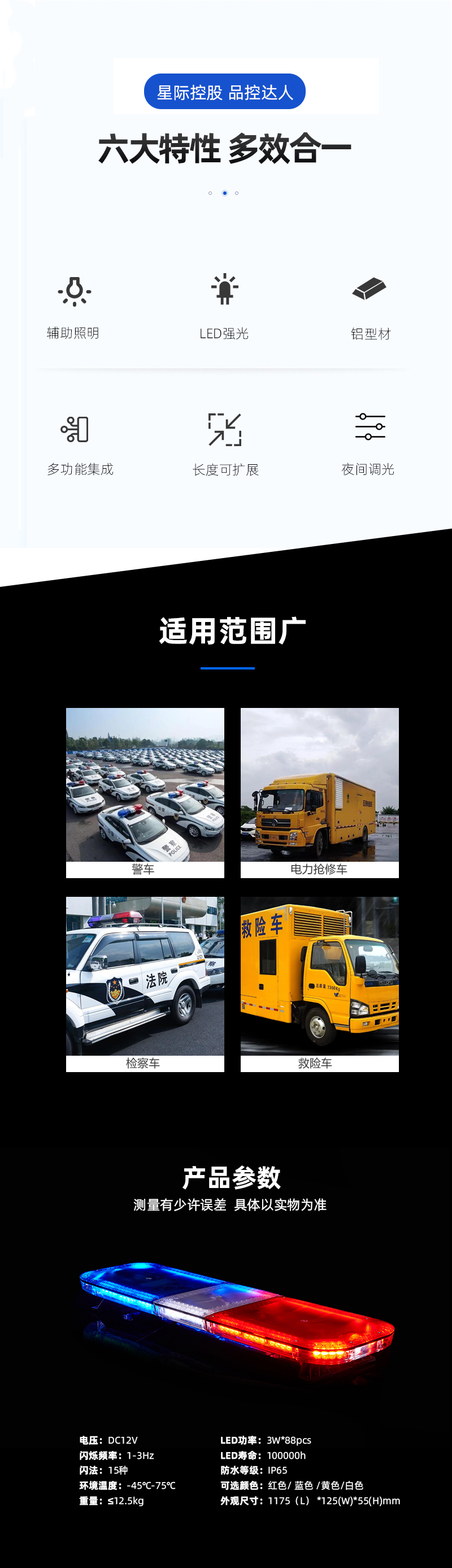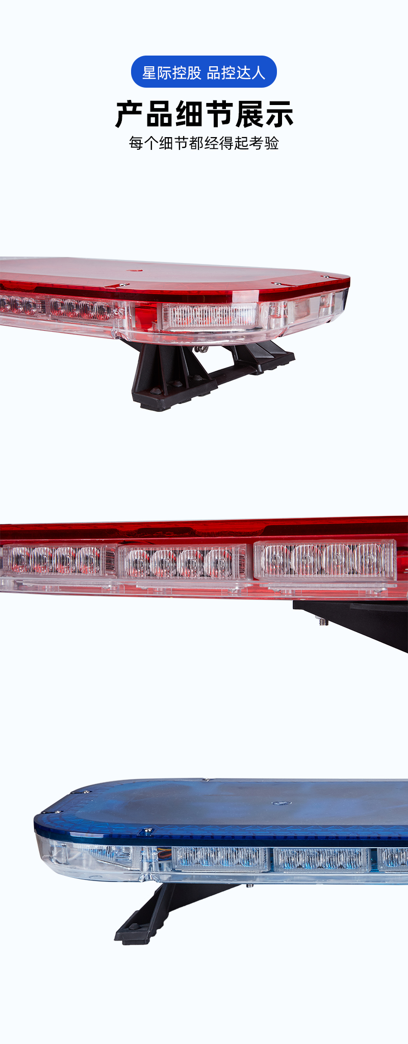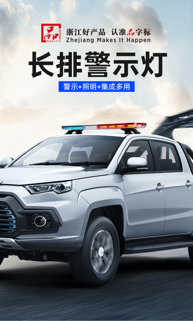TBD680000系列长排警示灯是我公司自主研发的中高端产品,设计依据运动学和力学原理,达到警灯与车身的完美结合,整体效果充分显示了警车的威严与庄重。产品采用节能、环保、高效、高亮度的LED为主光源,,通过光学设计达到强烈的震慑警示效果,同时满足R65、SAE、GB13954、T/ZZB 0256-2017等欧标、美标、国家强制性标准、浙江制造标准要求。该产品是浙江制造认证产品,广泛应用于公、检、法、司及消防、工程、救护、公路、电力等中高档特种车辆作警示设备之用。
