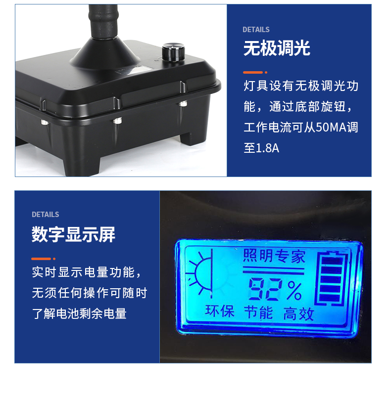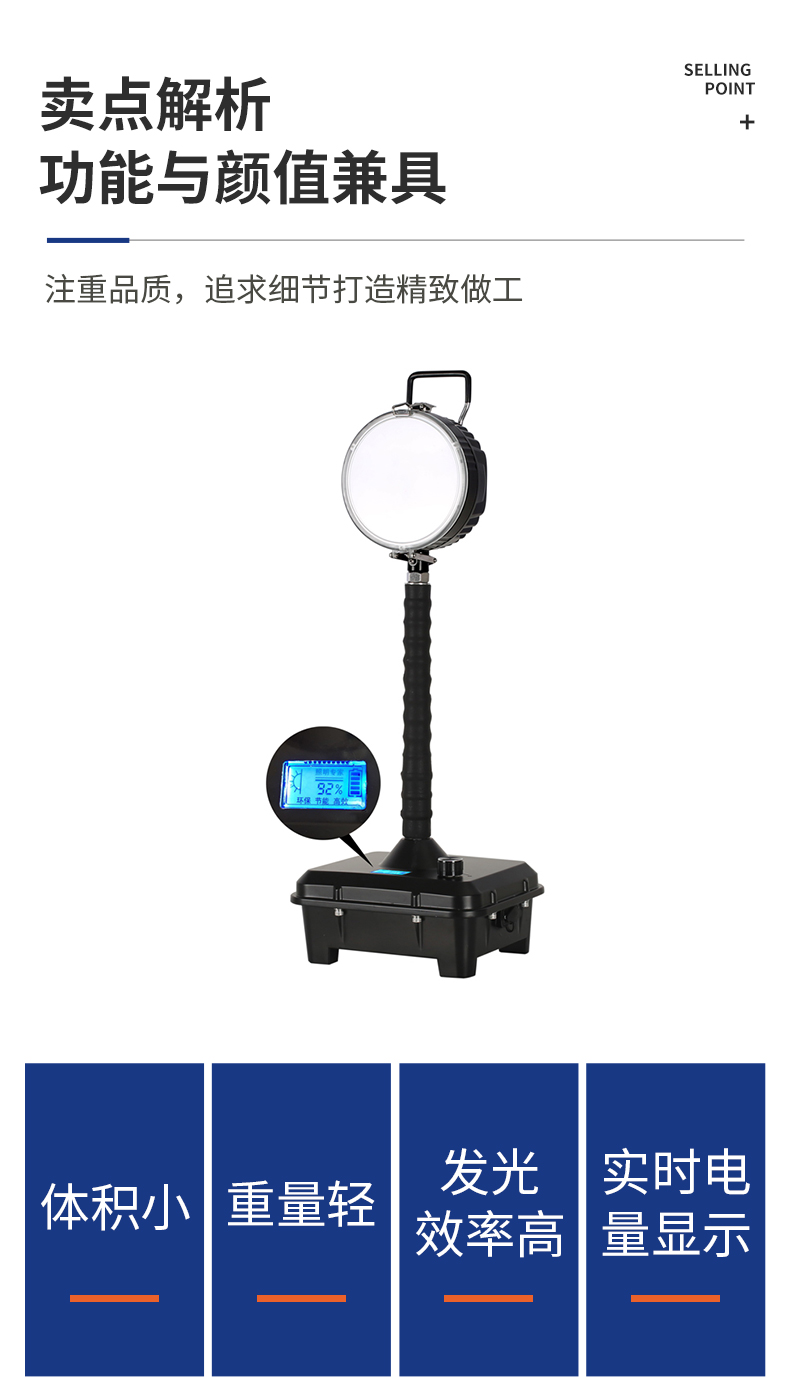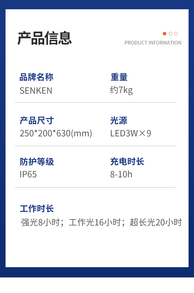 独特的灯头结构设计,可聚光远距离照明使用,也可轻松转换成泛光大面积施工照明使用。采用国际品牌LED光源9只串并联使用,发光效率高,满足了各类作业工作照明时长的需要。