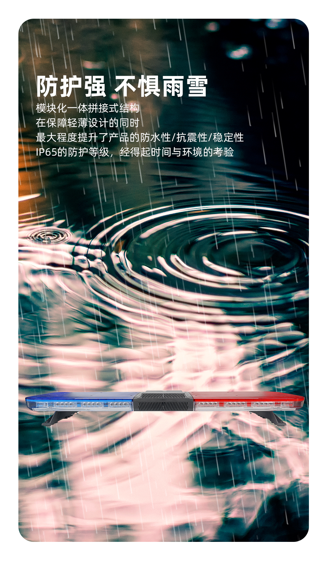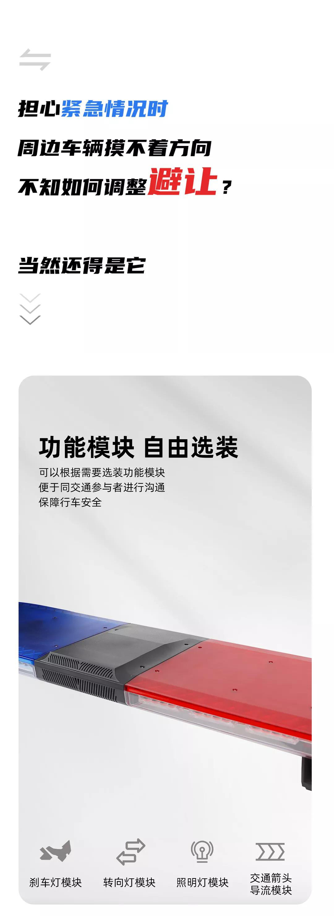 TBD680000系列长排警示灯是我公司自主设计开发的中高端产品,充分考虑运动学和力学的需要,达到与车的完美结合,整体效果充分显示了警车的威严与庄重。该产品也是采用了节能环保又高效率、高亮度LED做为主光源,及公司独有的高亮度LED灯部件,发挥了强烈的震慑警示效果。不但采用了LED高亮度光源,大幅度提高了整灯的警示效果,该产品的光学设计满足R65,SAE,GB13954,这就使长灯的整体效果和档次大幅度提升,实现成功升极转型。是目前国内中高档警示产品,广泛应用于公、检、法、司及消防、工程、救护、公路、电力等中高档特种车辆作警示设备之用。