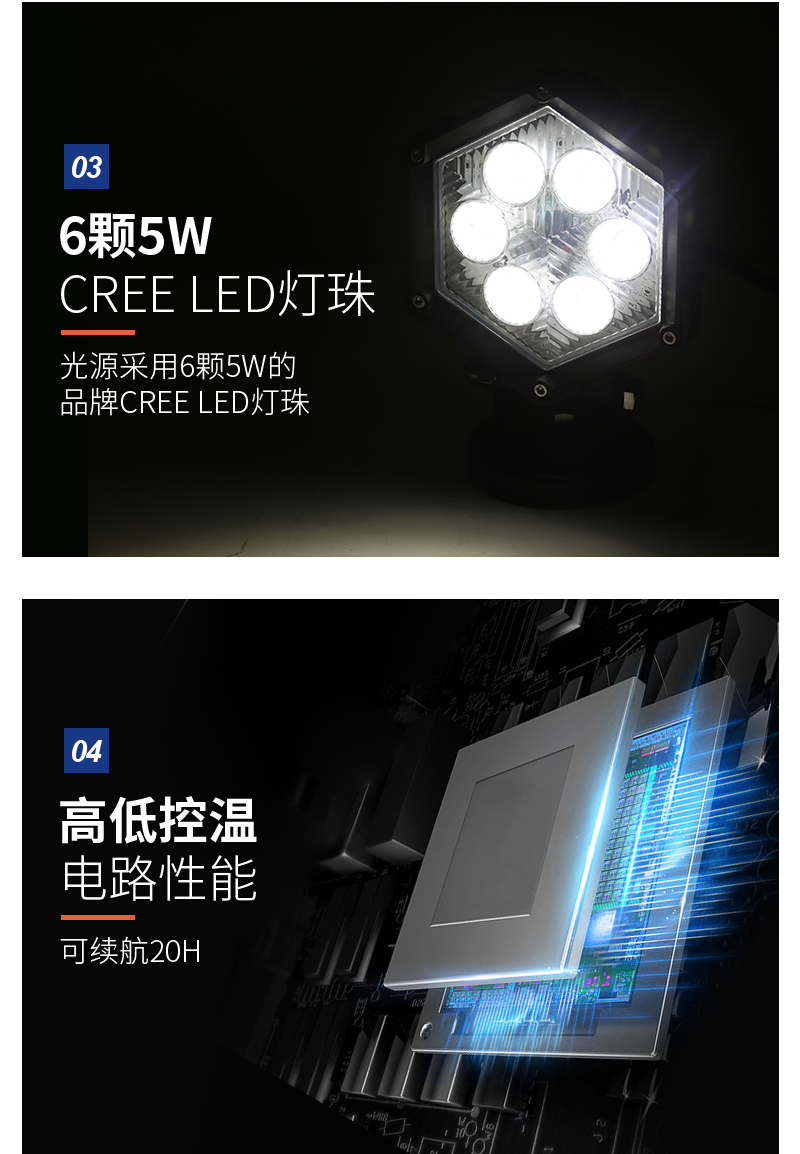 SKGD-30工作灯是本公司新开发的一款泛光型LED辅助照明灯,产品外观以六边形工业化的造型结合PC面双层透光罩,即使在太阳光下也能很好的体现剔透晶莹的质感。 适用于SUV,卡车,沙滩车或UTV的越野驾驶灯,并且还可以用于工矿车辆、特种车辆和农业车辆照明;适用范围广,可兼容配备12-24V直流电源的汽车和设备。