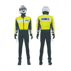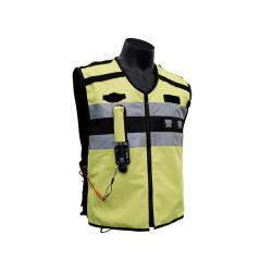 摩托车安全气囊服(无脖颈防护款)是本公司自主研究开发的新产品,其主要功能是以高压气瓶为充气源,在摩托车骑乘人员与摩托意外分离时,气囊瞬间充气,对骑乘人员的摔、撞等伤害提供保护。