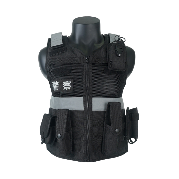 背心主体采用外侧双层网孔设计,呈现六面透气中空立体的结构面料,装具采用聚醋纤维面料。