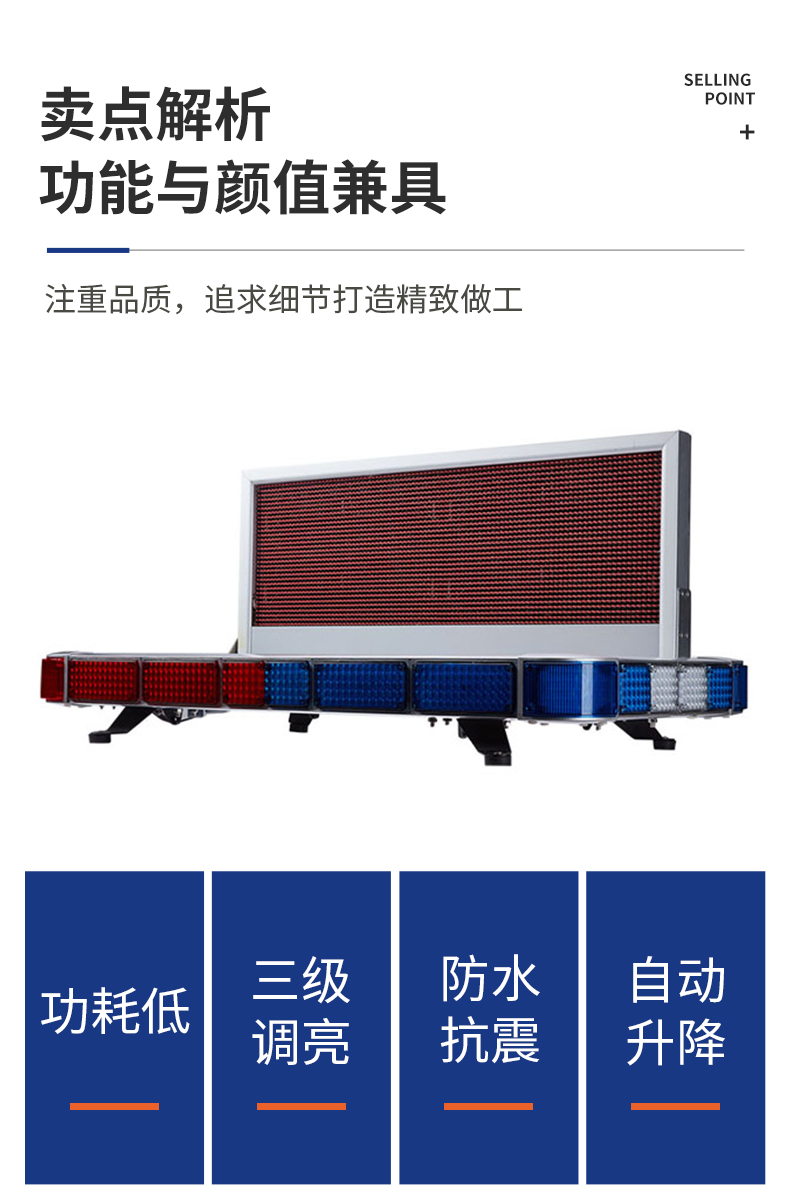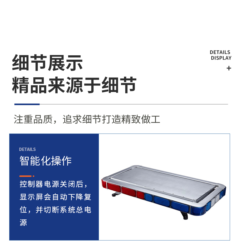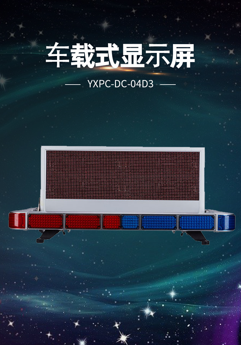 YXPC-DC-04D3车载式显示屏具有自动升降功能,配带液晶显示控制器,有自动记忆贮存功能。在系统的四方及拐角处分别安装了LED警示灯,在四个拐角处可选配扬声器。外形美观,结构合理,操作简单,功能齐全,可广泛应用于交警、巡警值勤、工程抢险、现场事故勘查等流动作业指挥。
