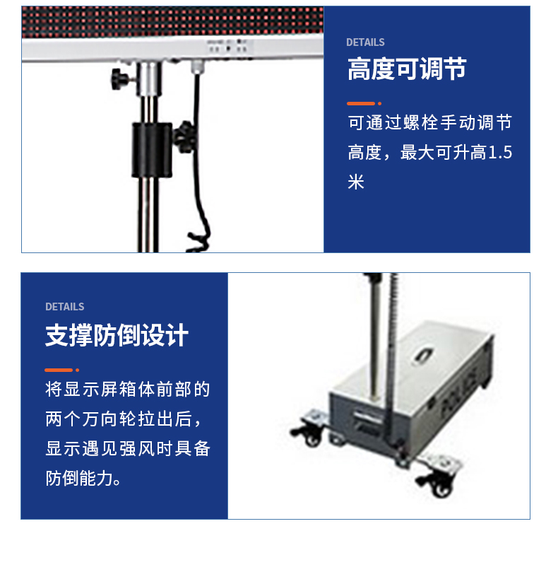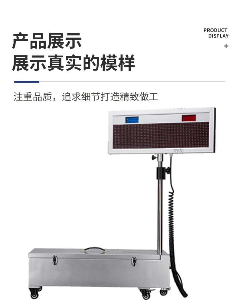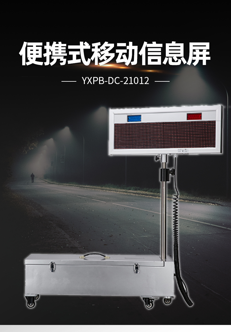 移动便携显示屏适用于交警值勤、工程抢险等车载流动场合,作为交通疏导文字图形警示,是本公司广泛采纳交警管理部门等用户建议设计生产的产品,该产品具有设计结构新颖、使用方便的特点。整个设备由显示系统和便携固定系统两部分组成。显示系统主要由液晶控制盒和显示屏组成。液晶控制盒可预贮储交通、工程等现场指挥常用的警示文字图案。控制盒可随时取下离开设备。计算机电脑控制是利用车载计算机或笔记本电脑通过专用配套软件控制显示发布文字信息。 显示屏显示采用超高亮LED,工作时发光指示可在阳光下远距离可视。