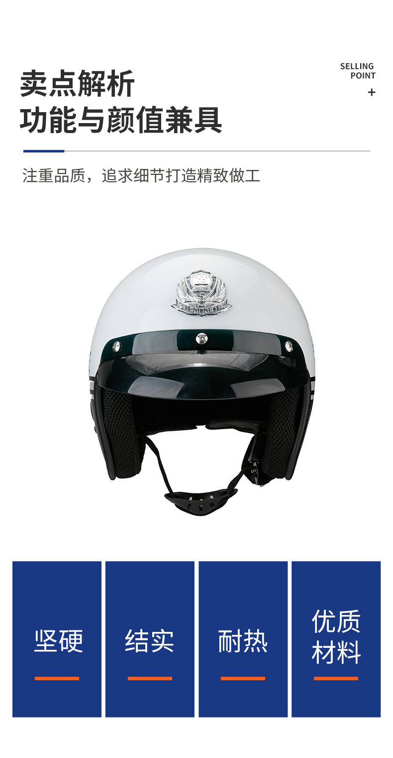 MTK-C-01警用摩托车头盔(春秋盔)是一种用于防止头部及面部受到打击或其他潜在的伤害性攻击的警用装具。本头盔采用高强度ABS和PC材料制造,头盔由壳体、缓冲层、佩戴装置等组成,具有线条流畅,视野宽阔,透光率好,佩戴牢靠、舒适、解脱方便等特点,符合《GA295-2001警用摩托车头盔》标准的规定。是警务人员在日常执勤巡逻中保障自身的必备防护装备。