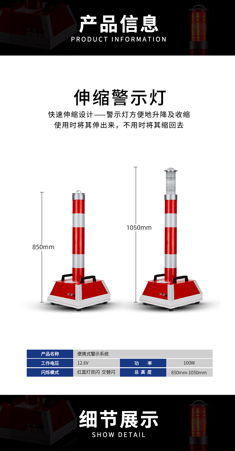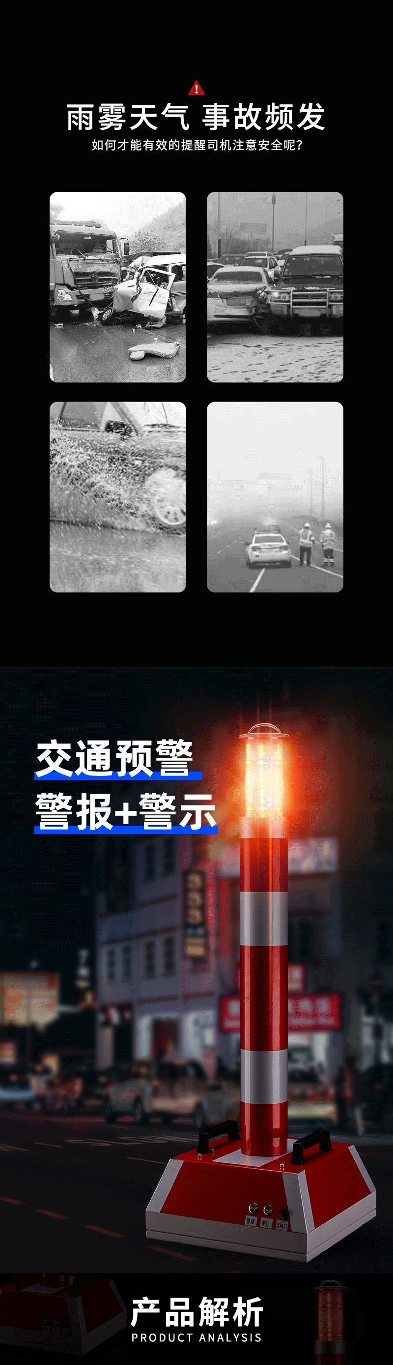 BX-100W便携式警示系统可在雾天天气中开启警示灯闪烁功能和开道警报功能,给来往的行车做警示作用,提醒驾驶员在雾天驾驶车辆注意安全,控制车速,避免在雾天发生交通事故。