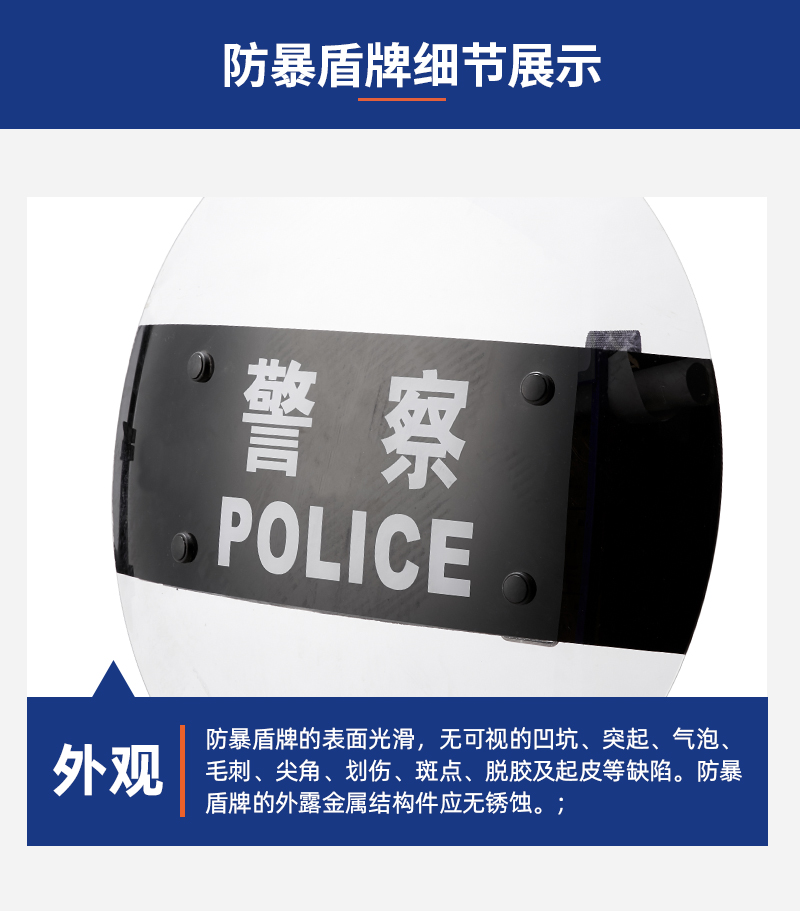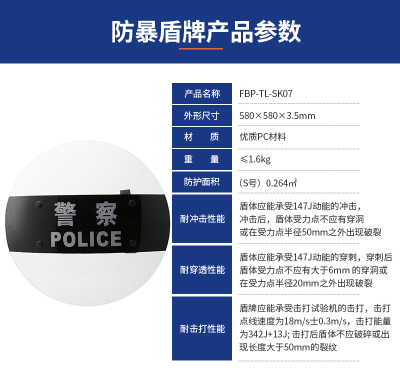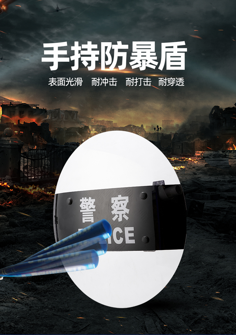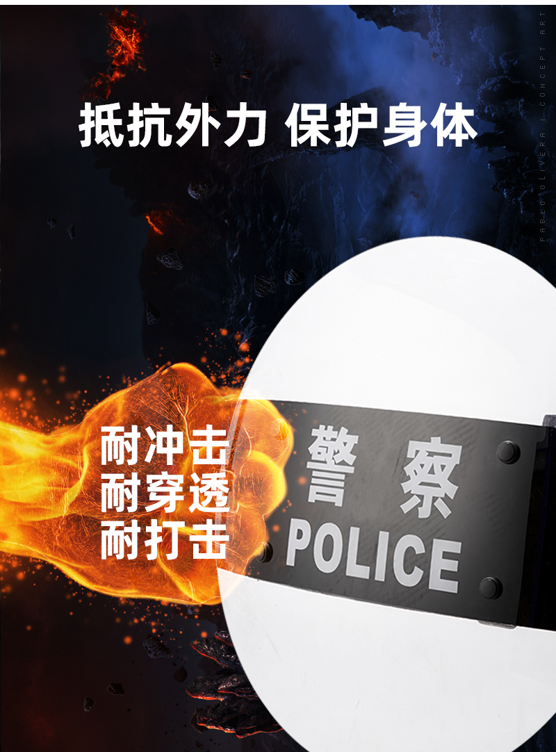 FBP-TS-SK-07 防暴盾牌系列产品采用严选PC材料,轻重量设计,曲面形状。具有透明高,重量轻,抗冲击力强,坚固耐用,能抵御除枪炮之外的投掷物和尖税器械、酸类的袭击,防护能力强。灵巧的PC塑料手柄安装固定牢靠,配有可以调节的维可牢尼龙搭链带,操作方便,是执法人员执行任务时的优良防护装备,盾牌正面字型可定做。