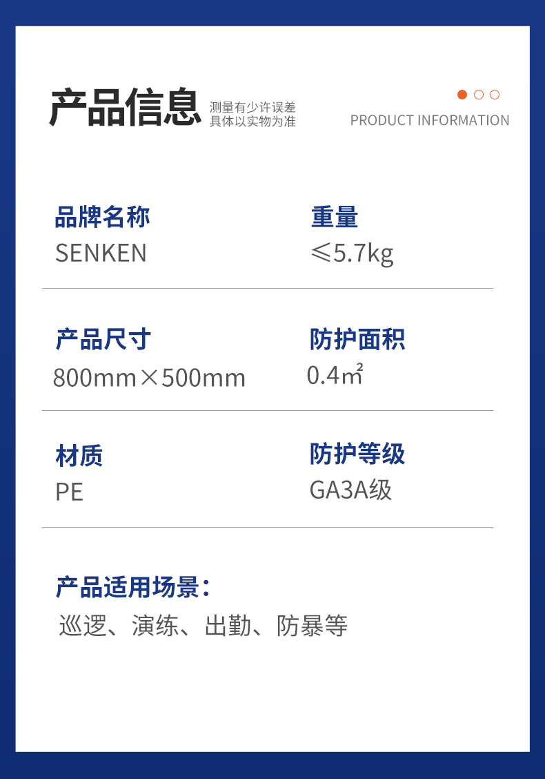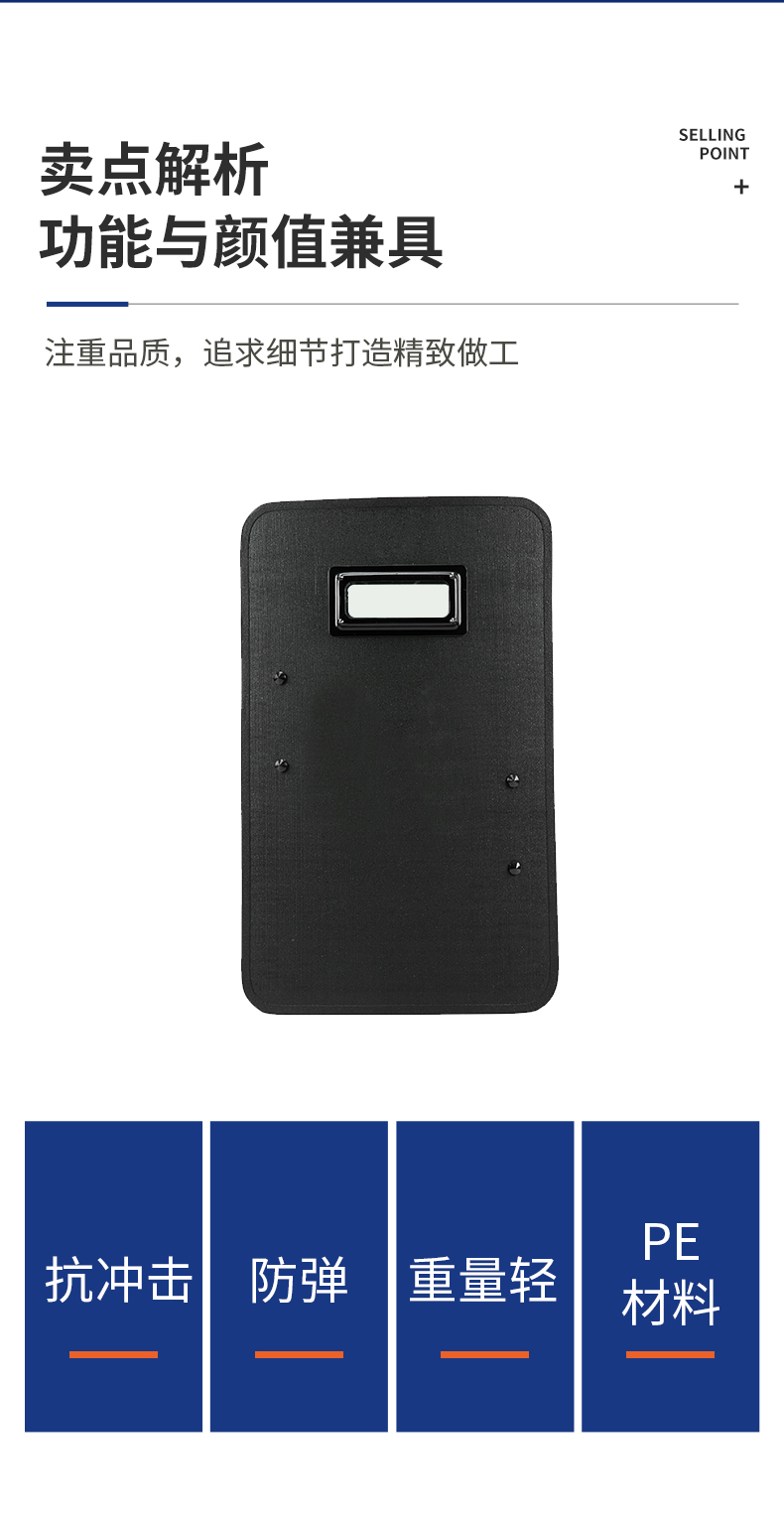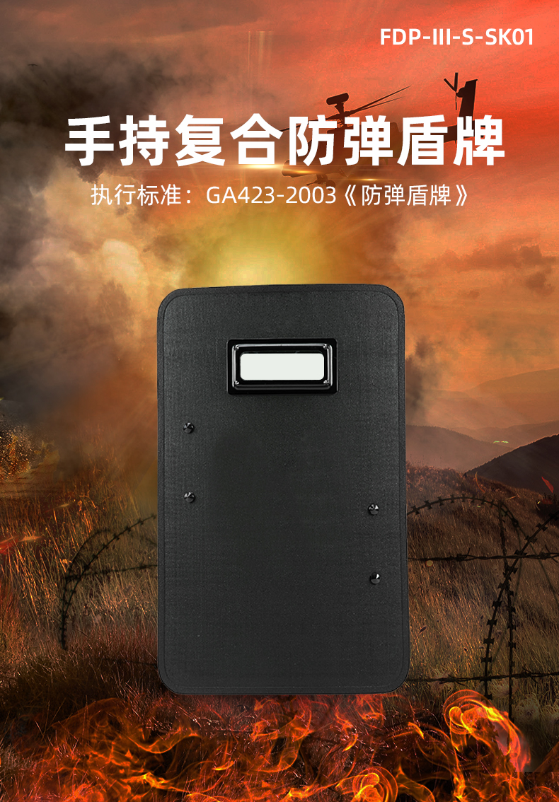 FDP-III-S防弹盾牌采用高性能PE材料,防弹性能强,抗冲击,质量轻,在常温、高温、低温条件下,均能承受防弹性能试验标准的射击,且中弹部位不出现穿透现象。适合于公安干警快速处理突发事件和围捕罪犯时使用,是制服持枪、持械犯罪分子的防护装备工具。