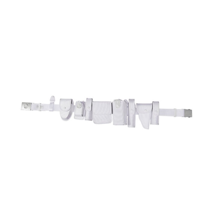 多功能腰带有黑色、白色两种颜色;腰带主体一般采用尼龙编织,其由腰带钎子、带体、斜挂带和八个装具套(手铐套、对讲机套、强光手电套、警用工作包、警用水壶套、警棍套、手枪套、催泪喷射器套。枪套除外,其他可单独拆卸)组成。