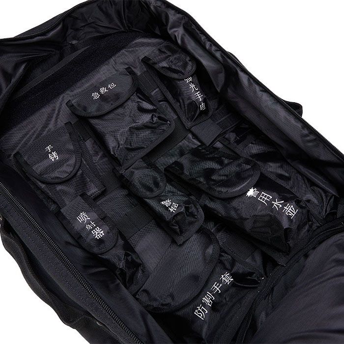 3、主要存放装备:警服、防刺服、多功能腰带、手铐、急救包、防割手套、警棍、催泪喷射器、强光手电;