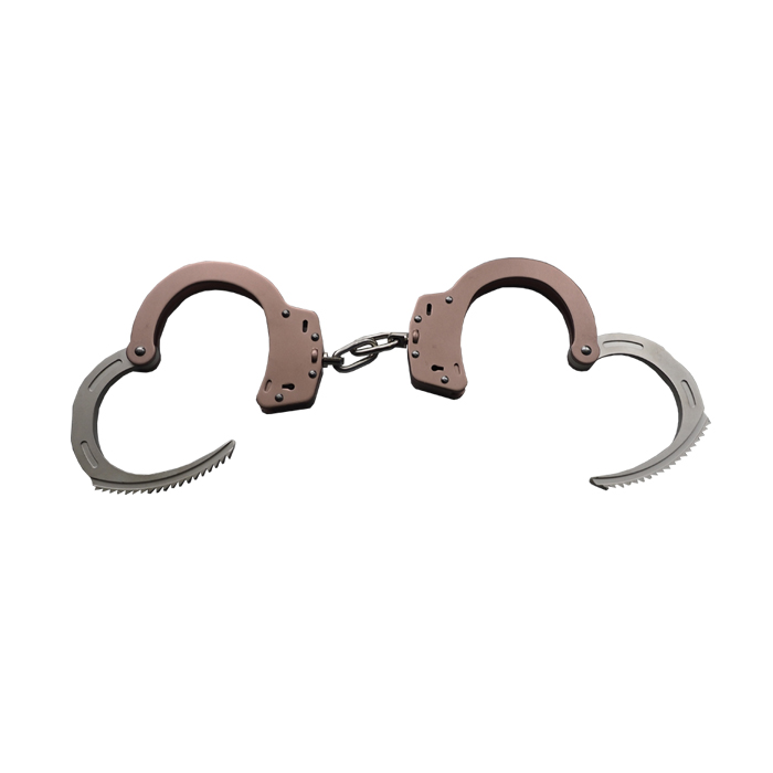 结构:三排齿防拨设计,静臂内部有三个独立弹簧,并装有隔离片,棘齿凸起和动臂卡爪五重结合在一起能固定在手铐动臂的任何位置