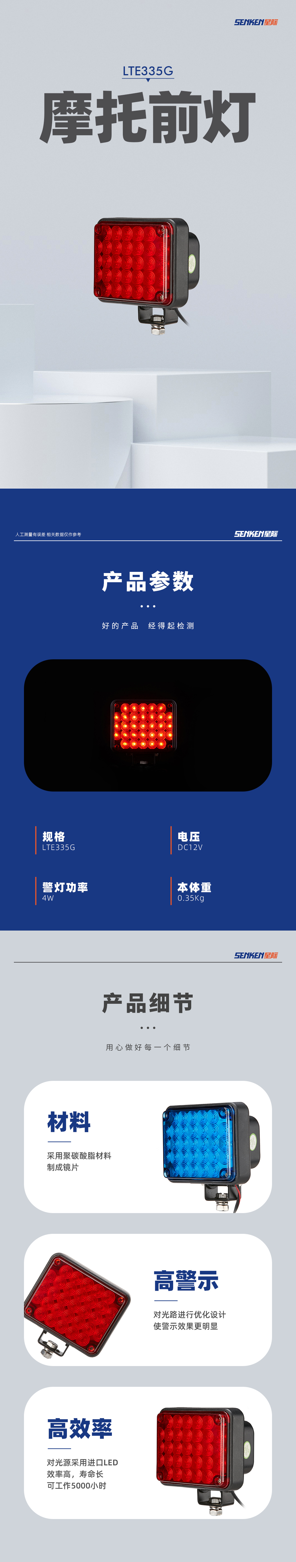 采用聚碳酸脂材料制成镜片; 对光路进行优化设计,使警示效果更明显; 对光源采用进口LED,效率高,寿命长,可工作5000小时。