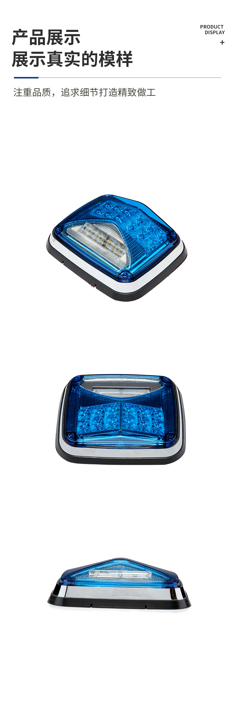 LTE1755警示照明一体化灯,采用大功率LED为光源,同时具备警示灯功能与照明灯功能。造型新颖,结构坚固,操作方便;警示灯组可选择多种闪烁模式,且灯光能达到180°可视;照明灯组照射范围大,可单独控制,为车辆操作人员提供照明。