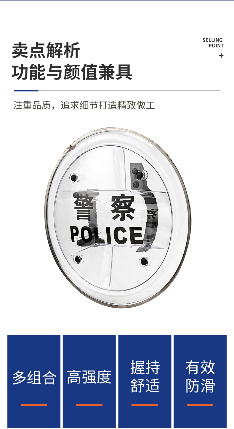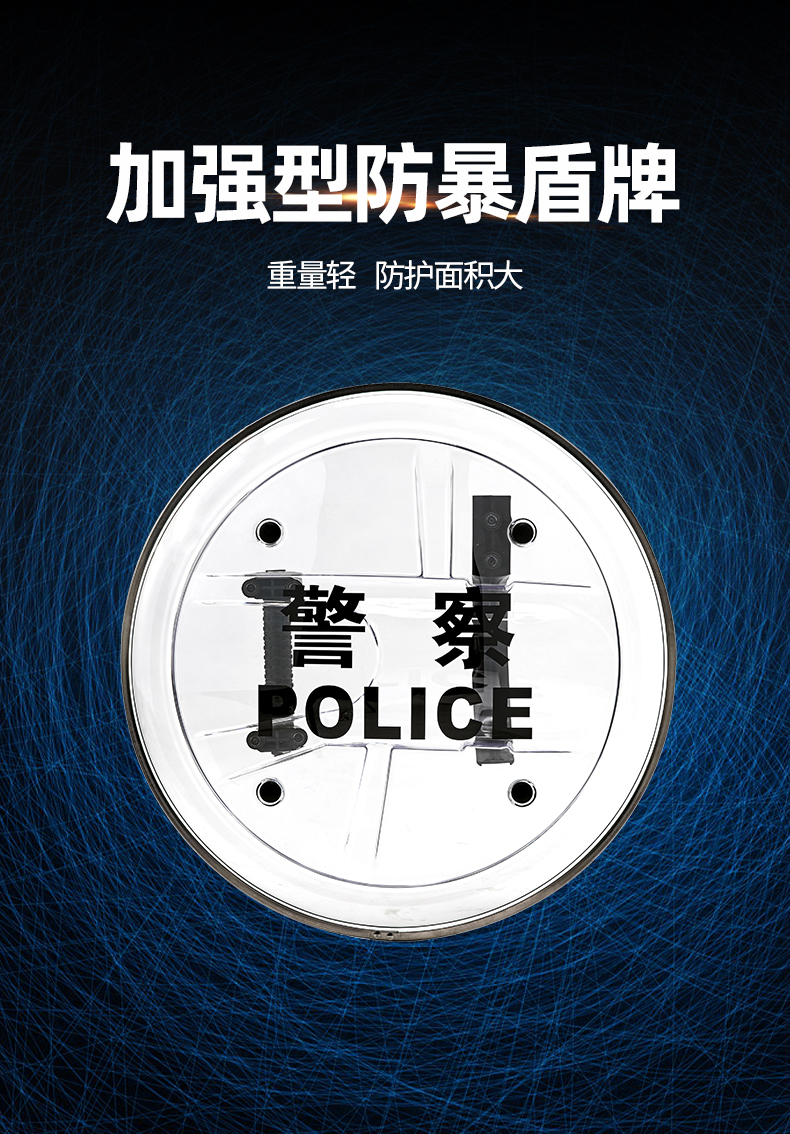 本盾牌采用双层PC板制成,周边有金属包边;有效防止刀砍、棒击、阻挡腐蚀液体等,是执法人员执行任务时的防护装备;人性化设计的握把与臂带,使握持舒适有力;重量轻,可有效减轻持握人的负担,提高作战能力;防护面积大,可以有效的保障盾体之后人员安全。