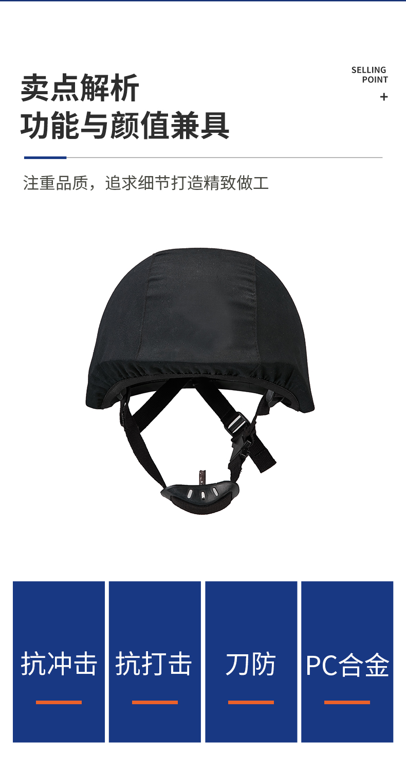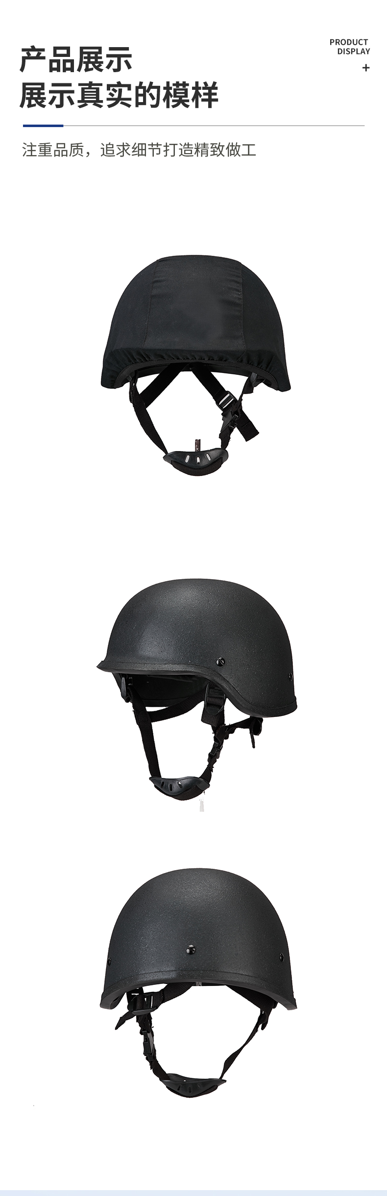 该防弹盔盔壳由芳纶浸胶机织布层压成型,阻燃性能良好,外表面续燃时间小于5S,在基础防弹性能上,更添一层防护。广泛适用于巡逻、演练、出勤、防暴等特殊场景。
