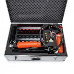 本套产品由抛投器主体、漂浮绳桶、引导绳桶、充气管、钛合金锚钩、2个发射气瓶、救生圈、救生圈保护罩、小气瓶、水敏感原件组成。