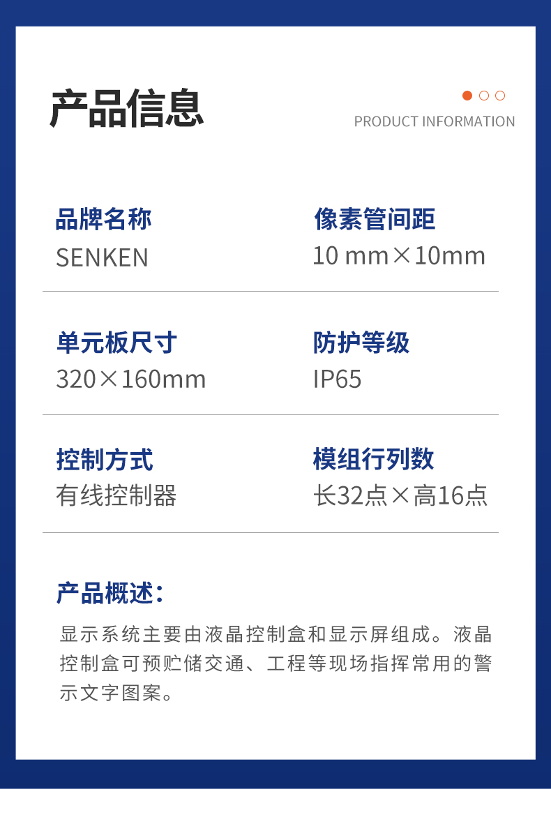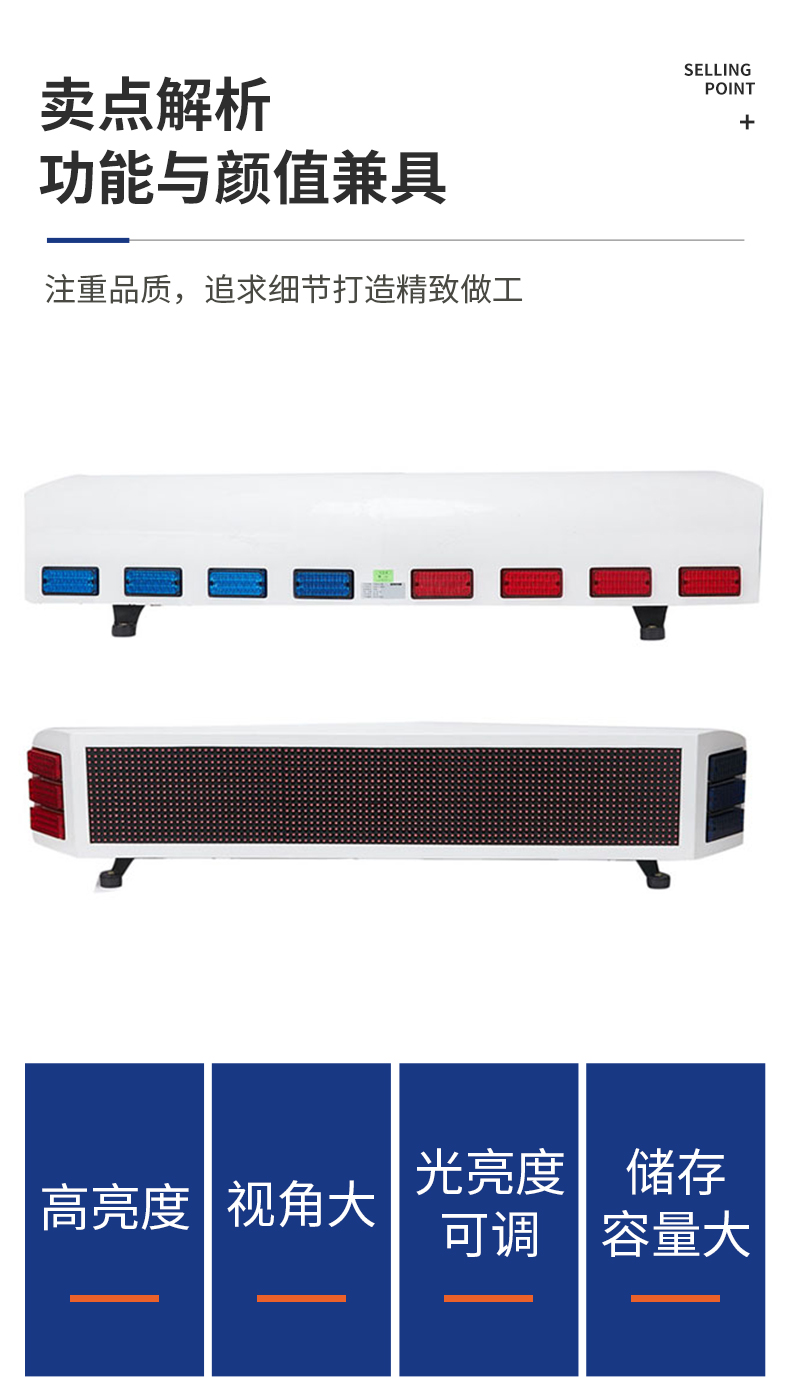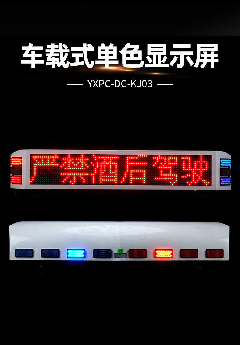 YXPC-DC-KJ03车载式显示屏是使用在交警值勤、工程抢险等车载流动场合作为交通疏导文字图形警示。是本公司广泛采纳交警管理部门等用户建议设计生产的产品,该产品具有设计结构新颖、使用方便的特点。显示系统主要由液晶控制盒和显示屏组成。液晶控制盒可预贮储交通、工程等现场指挥常用的警示文字图案。控制盒可随时取下离开设备。显示屏显示采用超高亮LED,工作时发光指示可在阳光下远距离可视。