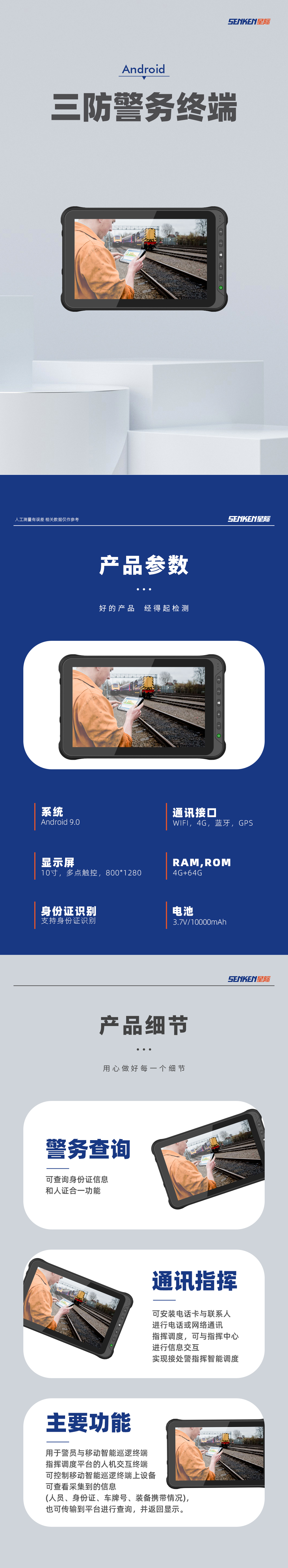 用于警员与移动智能巡逻终端、指挥调度平台的人机交互终端,可控制移动智能巡逻终端上设备,可查看采集到的信息(人员、身份证、车牌号、装备携带情况),也可传输到平台进行查询,并返回显示。并采用新的方式,进行接处警指挥调度。广泛应用于110巡逻、交警巡逻等。